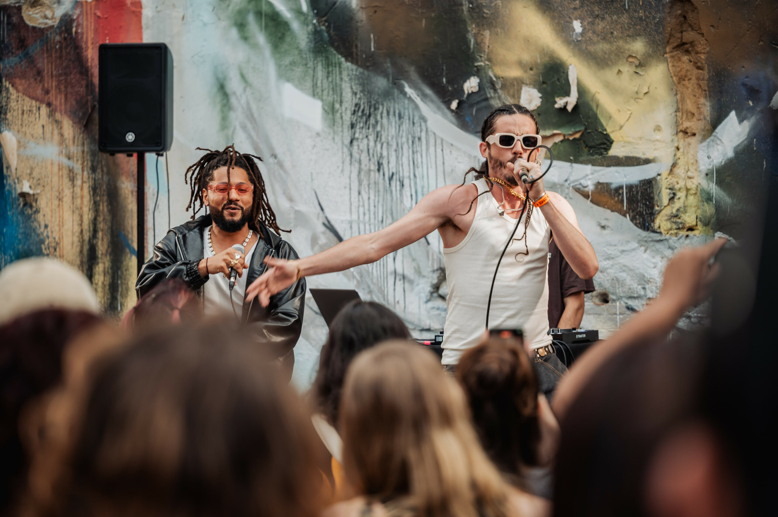 Primates à Plumes est un duo d’artistes lyricistes composés de Primata et Waraba, originaires de Guyane française. Leur travail explore la dualité, la multiplicité identitaire et la colère du déracinement. Primates à Plumes s’inscrit dans une écriture politique, poétique et viscérale, résolument rap, leur univers est né dans un creuset pluriculturel. Ce dernier puise dans les réalités post-coloniales, les cultures créoles, les mythologies antiques et contemporaines et les fractures de l'exil. De leur écriture naît tout l’univers du groupe, fracturé dans l’espace, dans les références historique et les multiples domaines artistiques, ainsi naissent les chimères. “Nous faisons tous partie de l’ordre des grands singes, et nous sommes là pour rappeler que nous sommes tous des primates.” Primata & Waraba