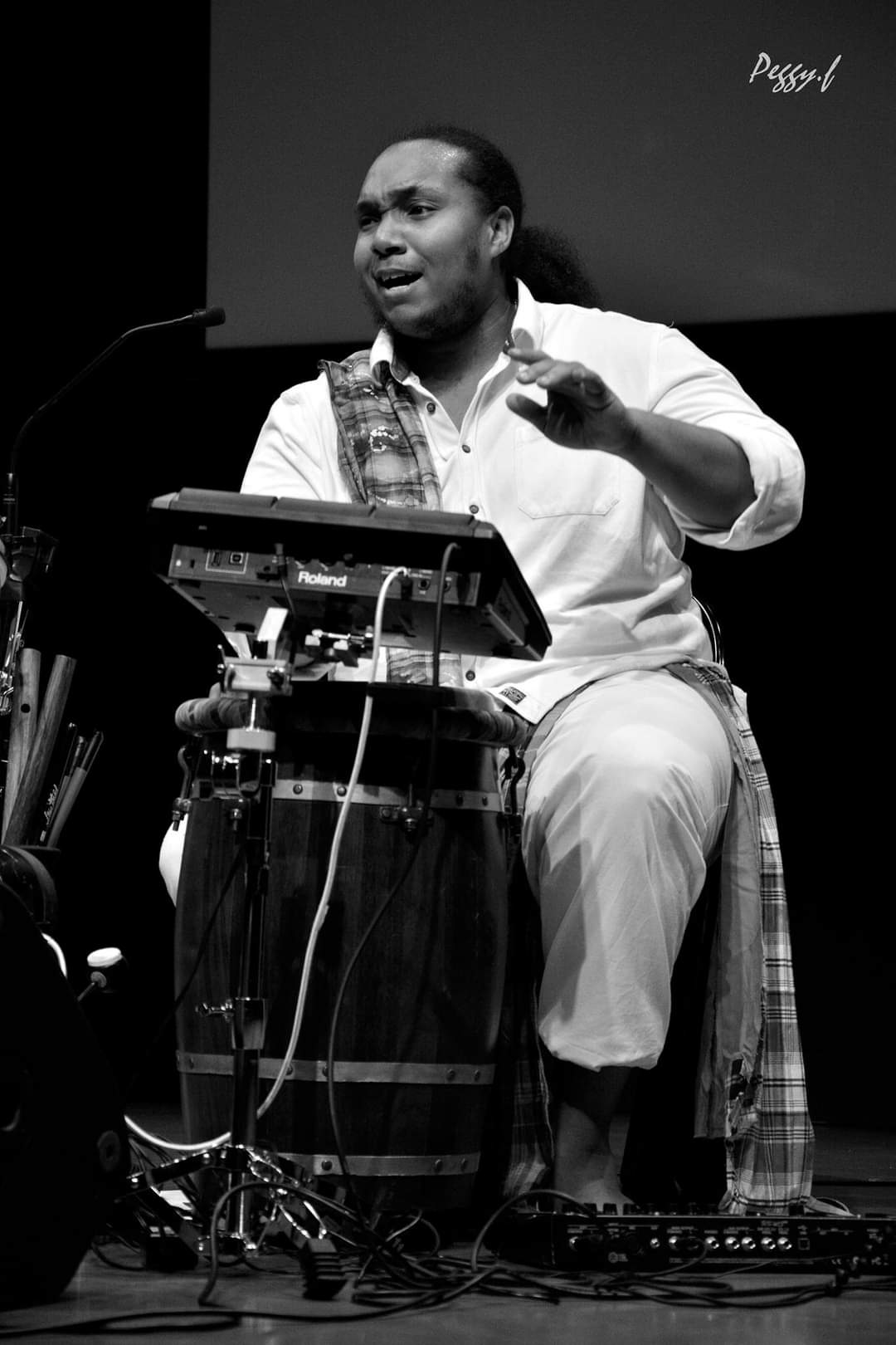 Originaire de la Guyane, enclave d’Amérique du Sud et carrefour des cultures, il a reçu une formation traditionnelle aux tambours et au chant de la culture guyanaise. Par la suite, il a collaboré avec divers ensembles musicaux, notamment Klack-Son (jazz traditionnel), Loothy (Soul et RnB), ainsi qu’avec le pianiste Denis Lapassion (jazz Amazonien) et Xavier Belin (jazz fusion sur les tibwa). Il a également participé à des projets avec des artistes tels que Saïna Manotte, Yann Cléry pour le projet MOTOZOT, KOLOLO, et Serge Sainte Rose pour la Symphonie « FROM BRITAIN TO THE CARIBBEAN AND BACK ». Son répertoire musical englobe le rap et le slam, abordant des thèmes tels que l’histoire créole, sa vision du monde et de son pays, tout en privilégiant le partage avec le public à travers l’écriture et le chant. Son style musical a évolué au fil du temps, influencé par la musique guyanaise, le hip-hop, le drum&bass, le dubstep, le jazz traditionnel, ainsi que le rock et la jungle japonaise. Il maîtrise le Gwoka, les rudiments du Bèlè, la batterie, les percussions électroniques (Sampling Pad, Loopstation…) et les nouvelles percussions émergentes telles que le hand pan.